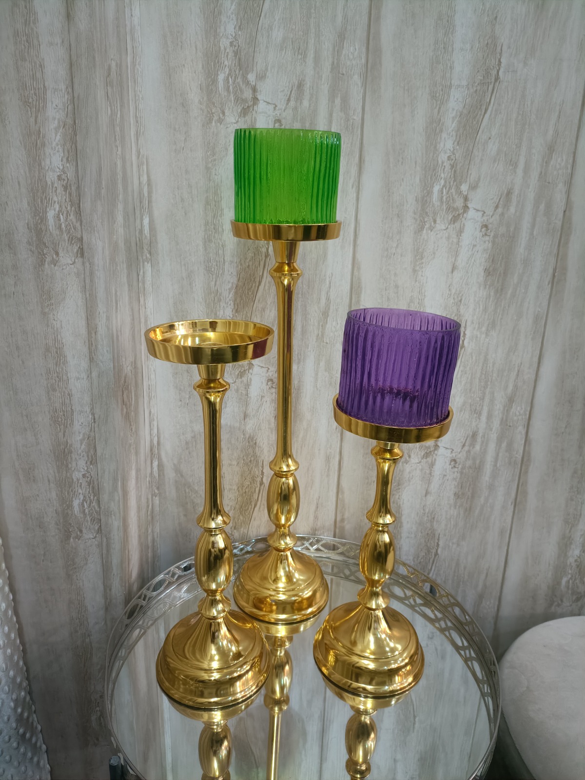 Embose Aluminum Candle stick set