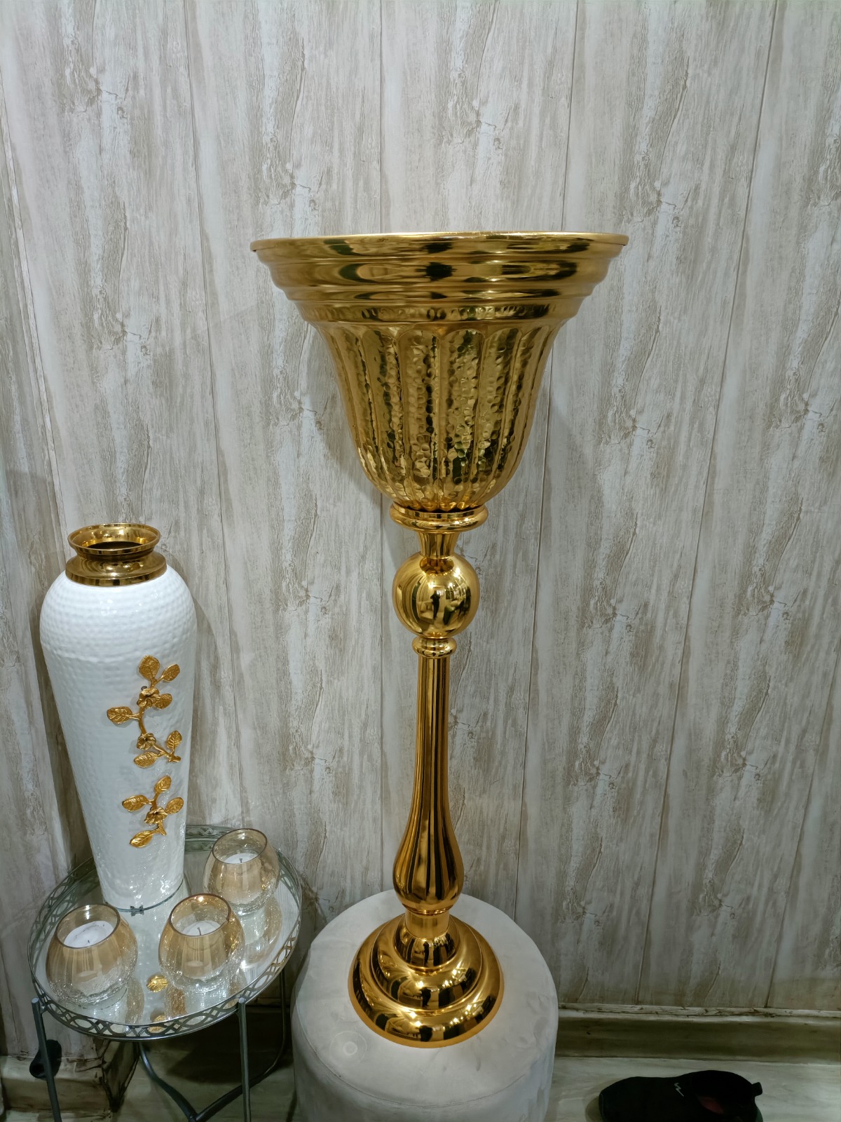 Hammered bowl vase with stand set